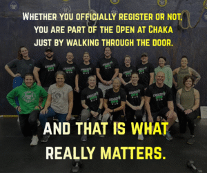 Either way, you will be doing the Open workouts at Chaka on Fridays. That is who we are. The Open is about community first.